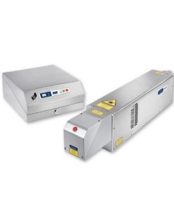 • The laser printhead features adjustable focus, designed for lines with frequent product changes. This technology allows for the adjustment of the distance and focus of the laser beam, meaning the laser does not need to be moved or adjusted for products of different sizes.