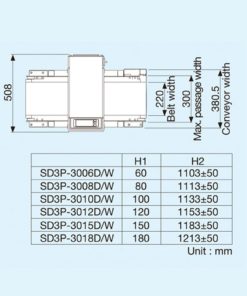 Sản phẩm đi qua khung dò của SD3P – 30 Type là 300mm và chiều cao tối đa 180mm.