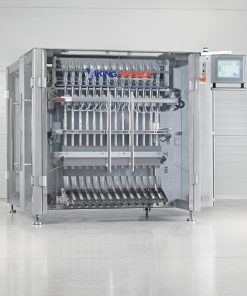 - Đây là loại máy đóng gói đứng tự động hoàn toàn, có tính linh hoạt cao và thiết kế 20 làn đóng gói cùng 1 lúc với nhiều loại hình túi stick khác nhau.