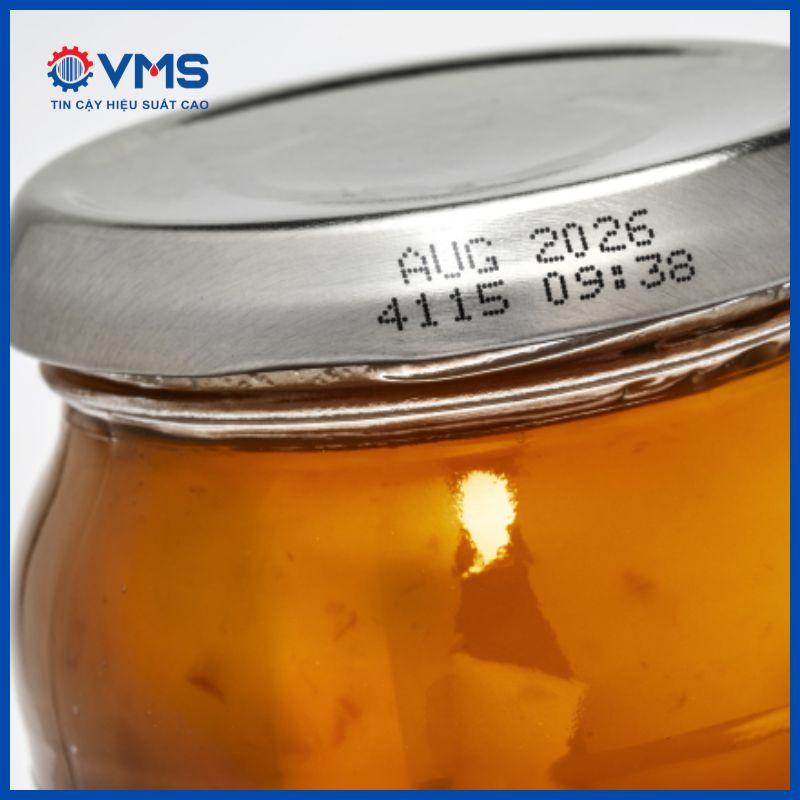 - Ngành đồ uống và thực phẩm: Máy in ngày sản xuất, hạn sử dụng sắc nét trên các bề mặt đặc thù như nắp chai nhựa hoặc đáy lon nhôm có bề mặt kim loại cong.