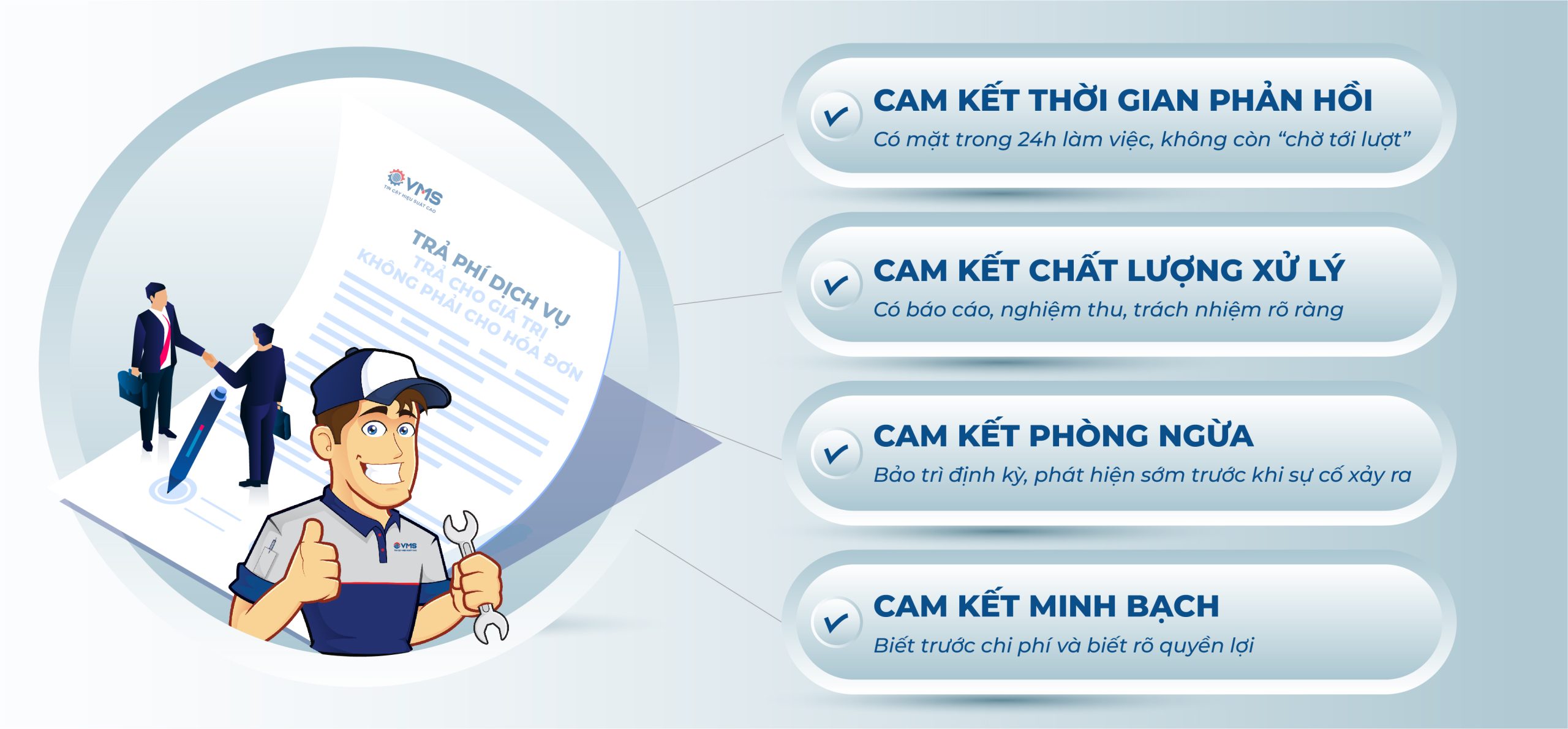 • Dịch vụ có cam kết của VMS không chỉ là “bộ phận kỹ thuật dự phòng”, mà là “lá chắn rủi ro” và “đòn bẩy hiệu suất” của chính khách hàng.